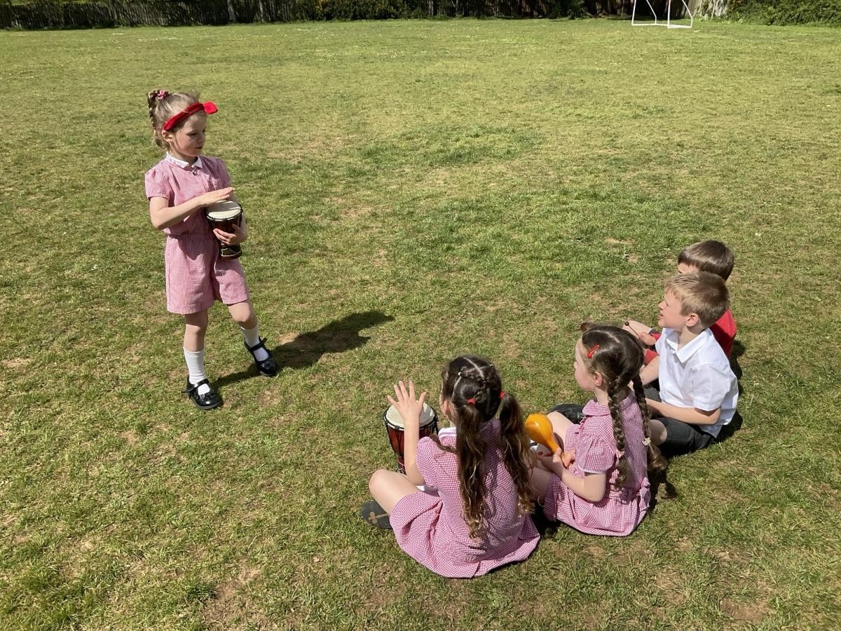 The implementation of our intent is through whole class music lessons for all year groups, at least weekly, delivered by a specialist music teacher and the class teachers. There is a well-sequenced, incremental progression of skills and knowledge that sets out exactly how the children progress year on year. Music teaching is linked with class project whenever possible.